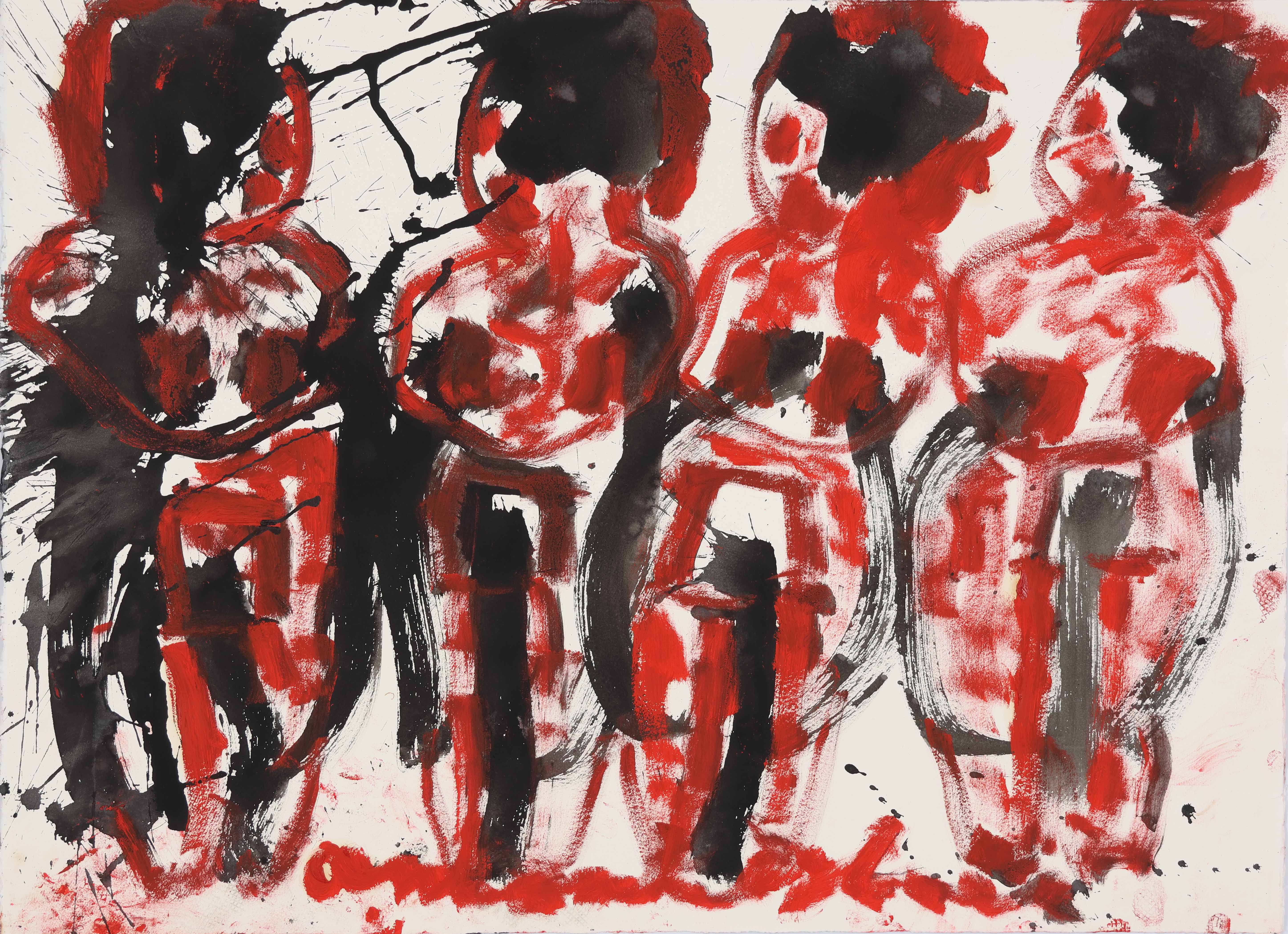 Op dit werk met de titel 'Vier Bruiden' staan vier figuren afgebeeld. Het werk is afkomstig uit een particuliere collectie...